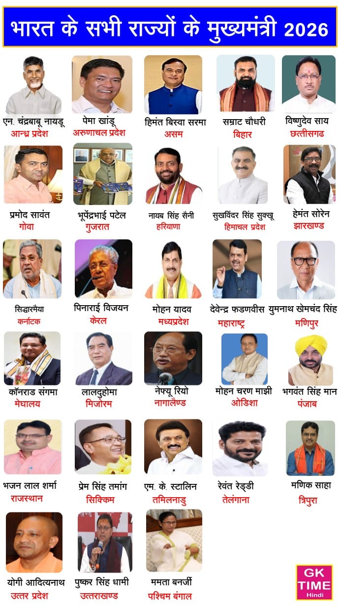 सभी राज्यों के वर्तमान मुख्यमंत्री एवं राज्यपालों की सूची 2026